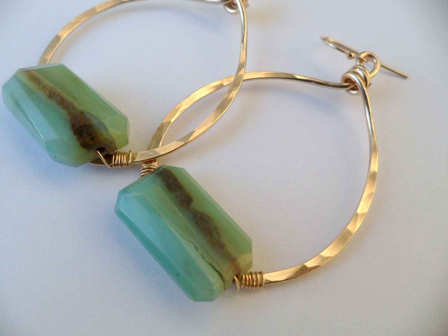 | Peruvian Opal Earrings on Handmade Gold Filled Hoops |